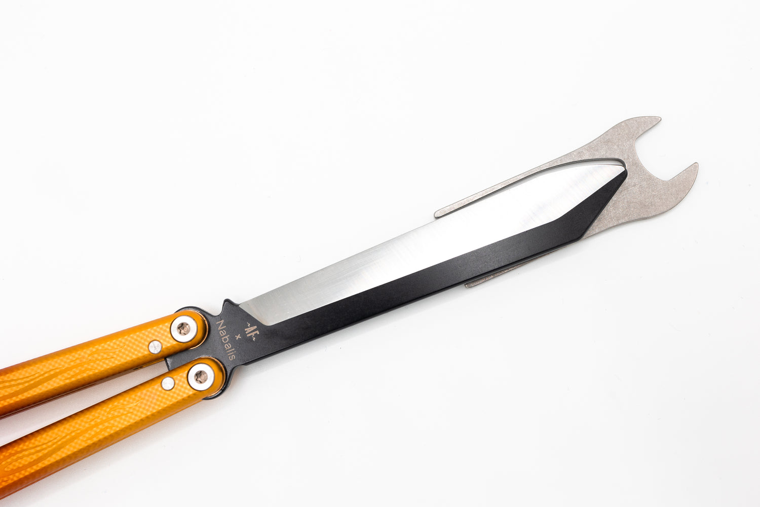 This "wrench" comes with international orders. It makes the balisong look like a wrench when in an Xray in customs. This is a precautionary measure, even though it is not illegal in any country.